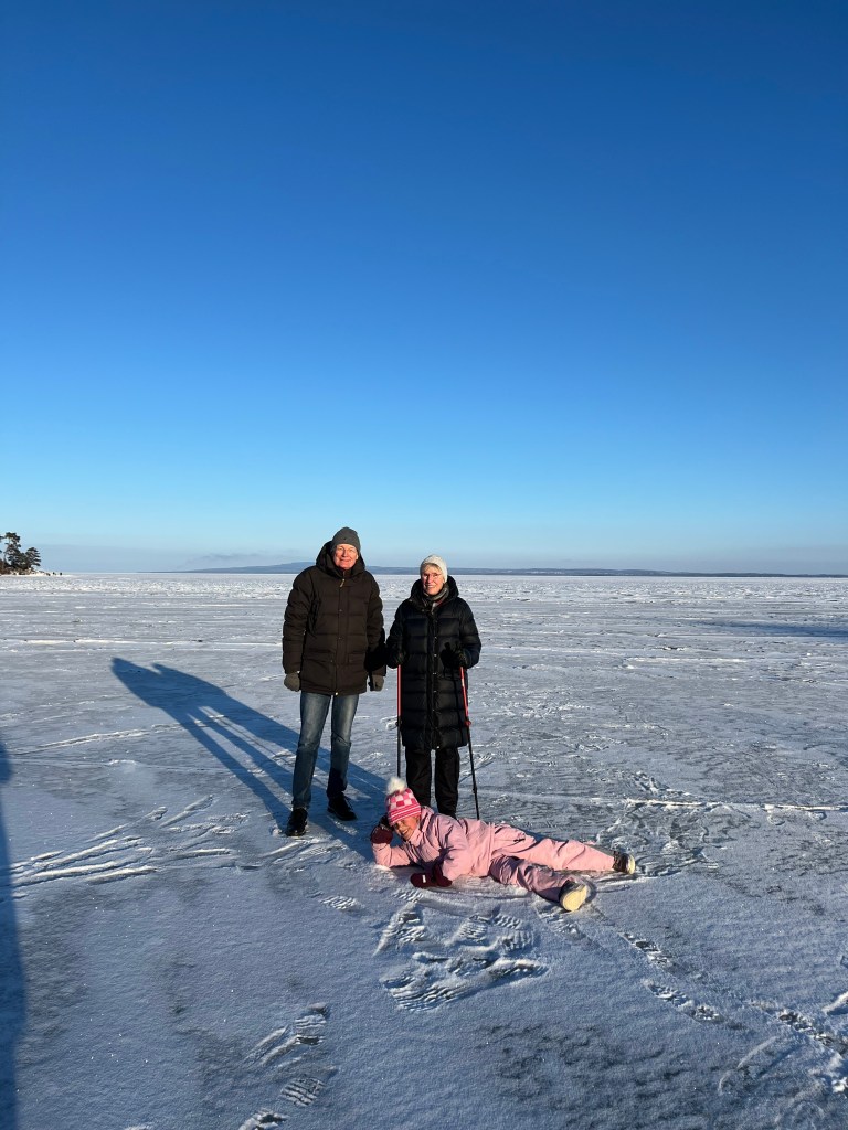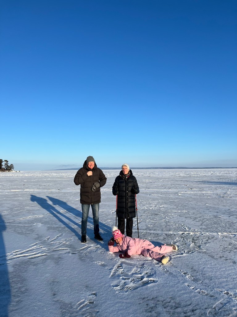 På sin väg mot nordligare trakter har Limhamnfamiljen mellanlandat i ett Lidköping som just nu präglas av rena istiden. Frampå kvällskvisten dök Selmas lillkusin Majlis upp. Hon hade ägnat dagen åt skridskoåkning på de närmast bottenfrusna dammarna öster om Brakelundsfältet. Jag har spanat efter isbrytaren Ale de senaste veckorna, men han (den gamle sagokungen) tycks ha kört fast i Vänersborgsviken.