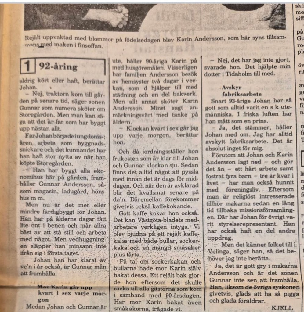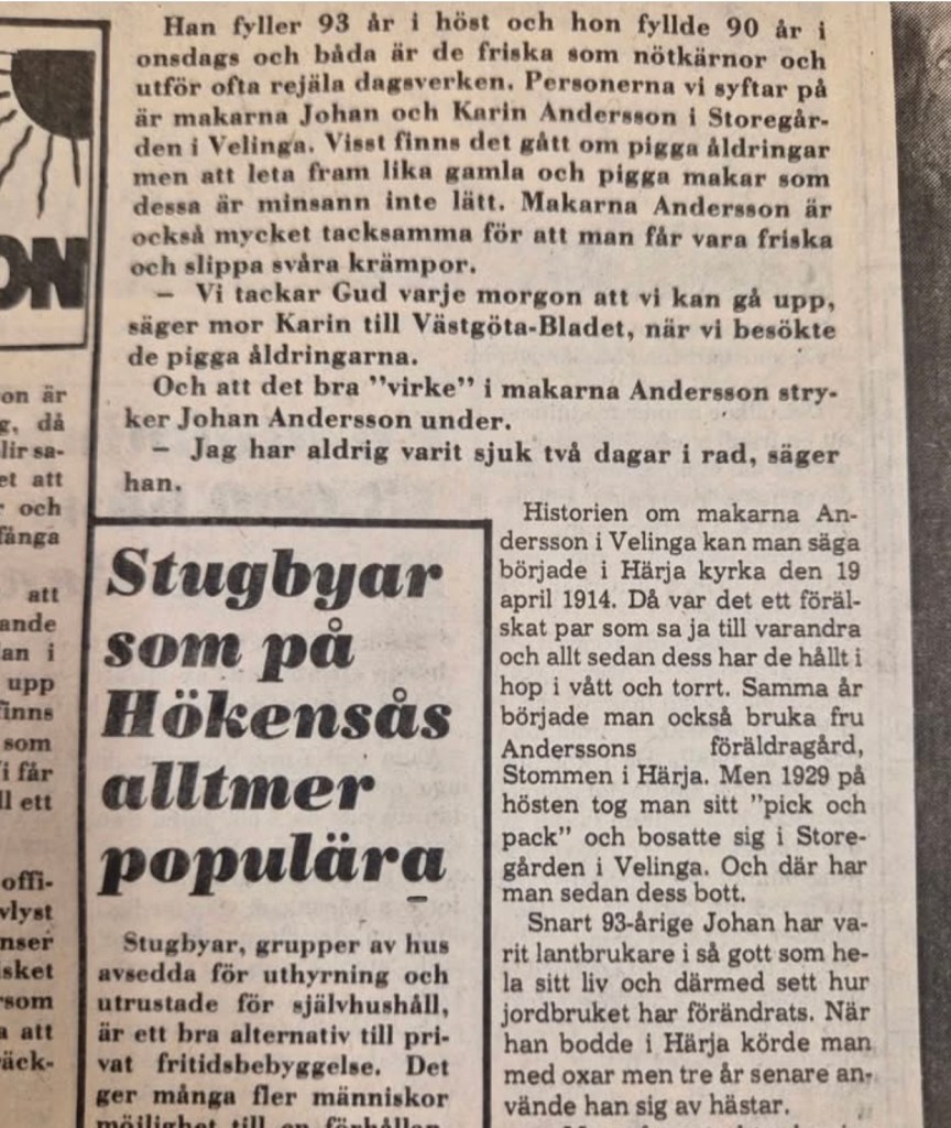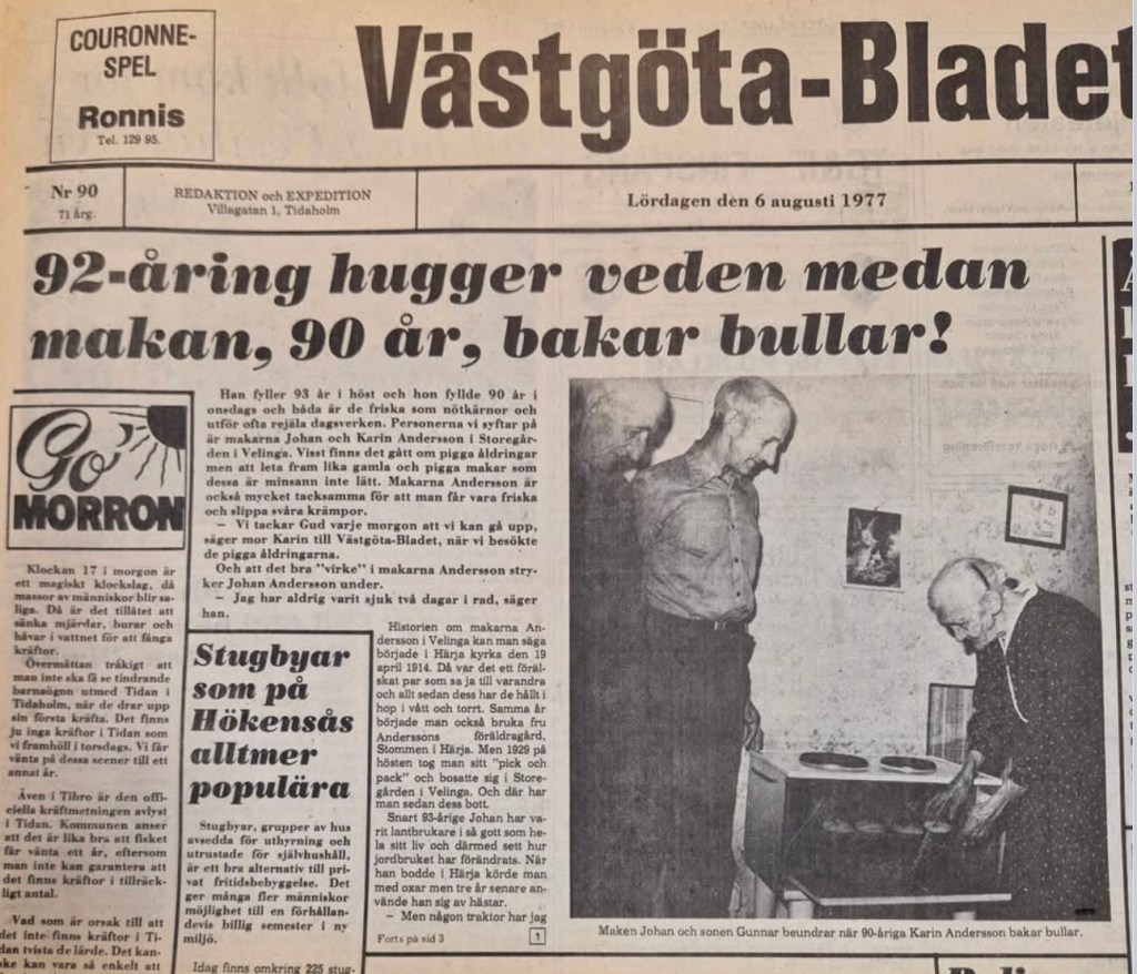 I Västgötabladet från augusti 1977 kunde man läsa om morfar Simons kusin Karin och hennes man Johan.