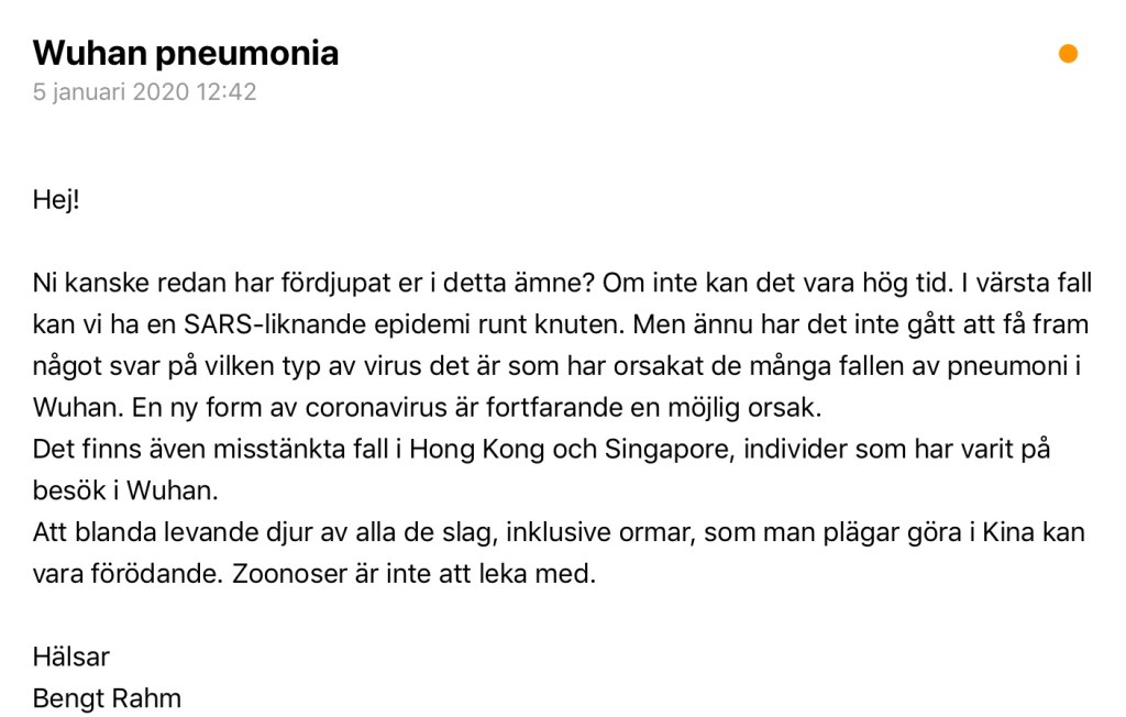 Responsen var obefintlig, men det skulle den dessvärre även ha varit om Folkhälsomyndigheten hade stått som mottagare.