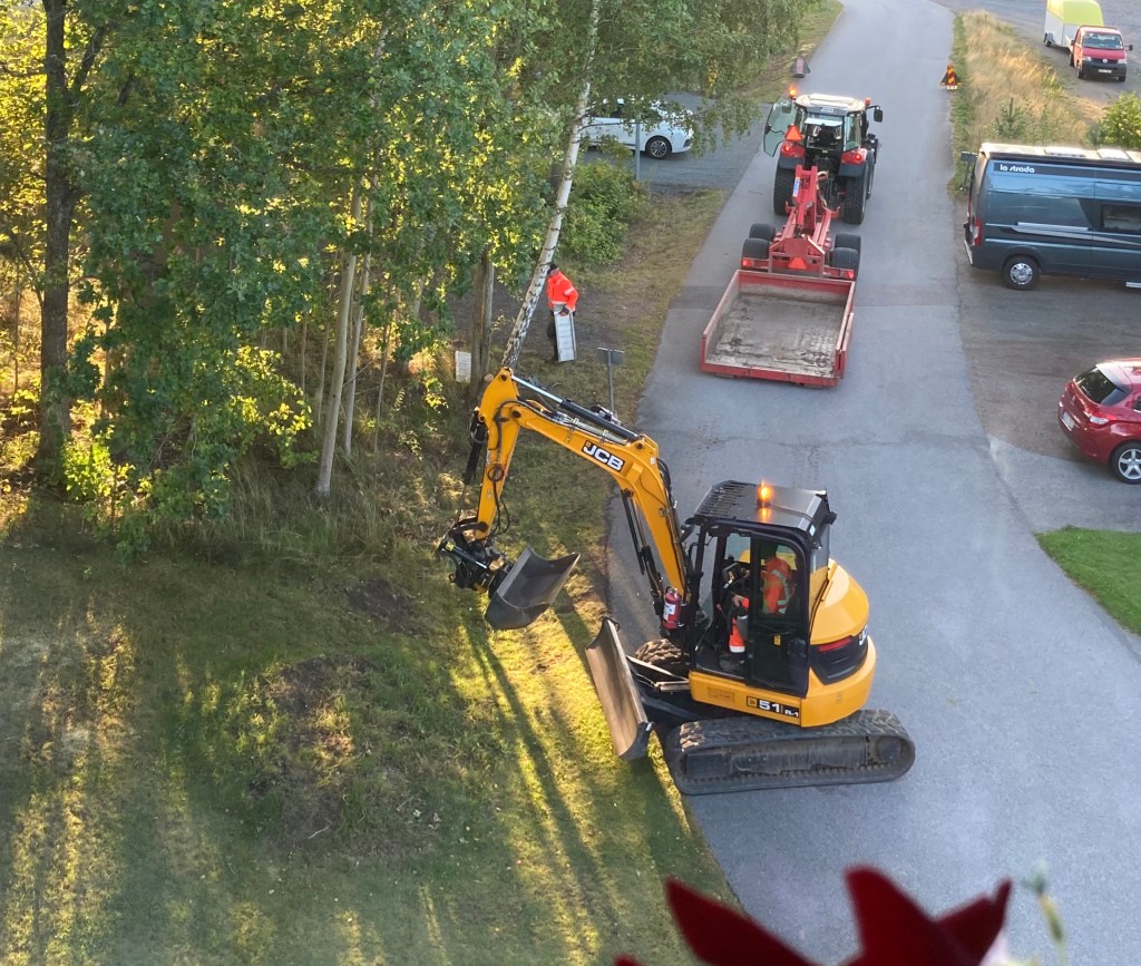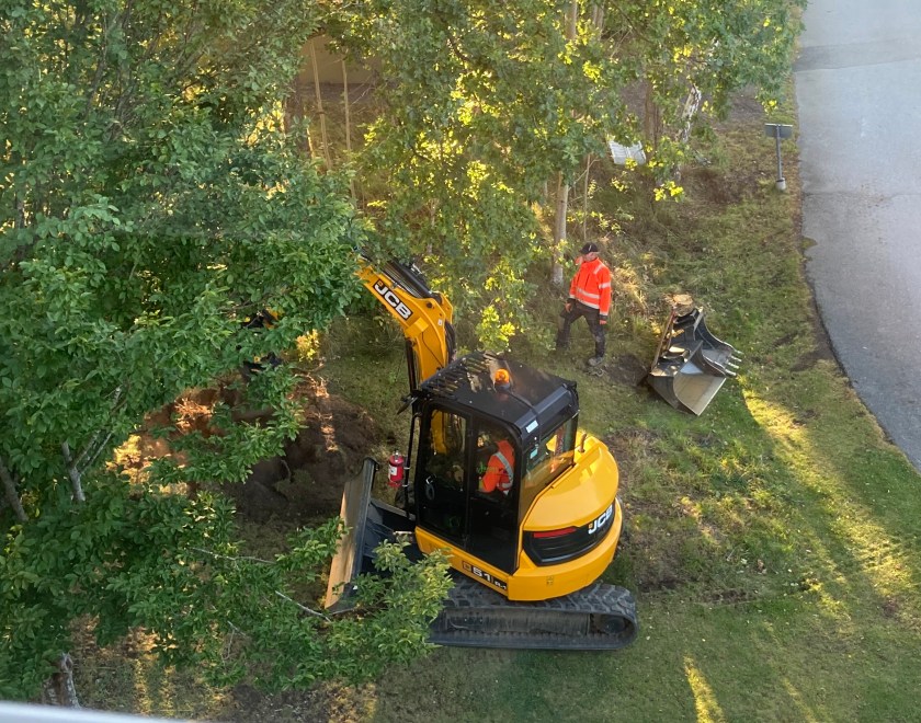 Jag blev avbruten vid halv åtta-tiden. Då dök det upp ett gäng som också ville gräva, inte i släkthistorien utan i jorden.