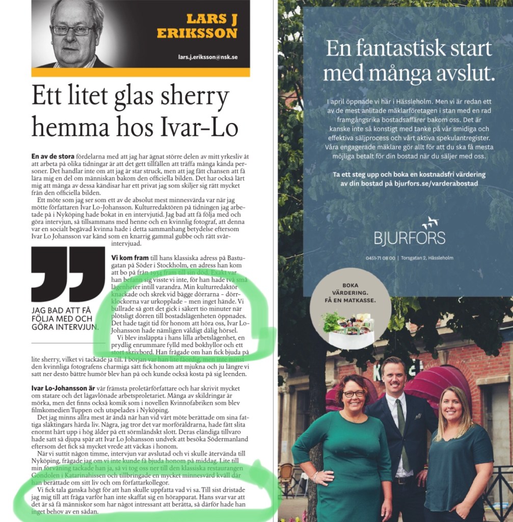 Lars J Eriksson på Norra Skåne har haft förmånen att få intervjua Ivar-Lo, en av mina favoritförfattare.