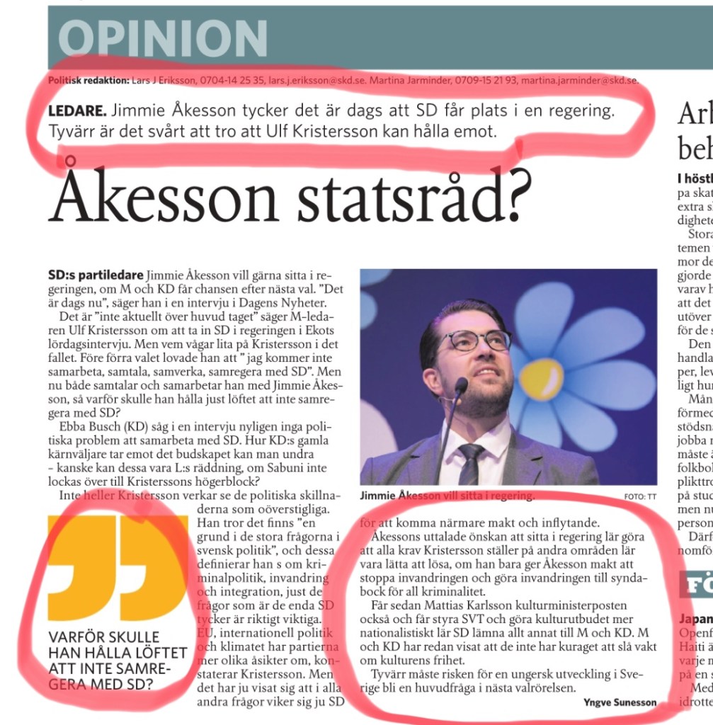 Att Sverige skulle bli ett nytt Ungern är säkert Åkessons dröm. Demokratin skulle, om ”drömmen” förverkligas, komma att raseras på nolltid.