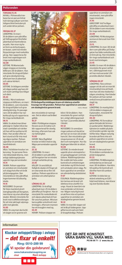 Polisrondssidan i dagens NLT är ingen rolig läsning.