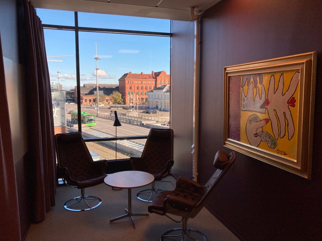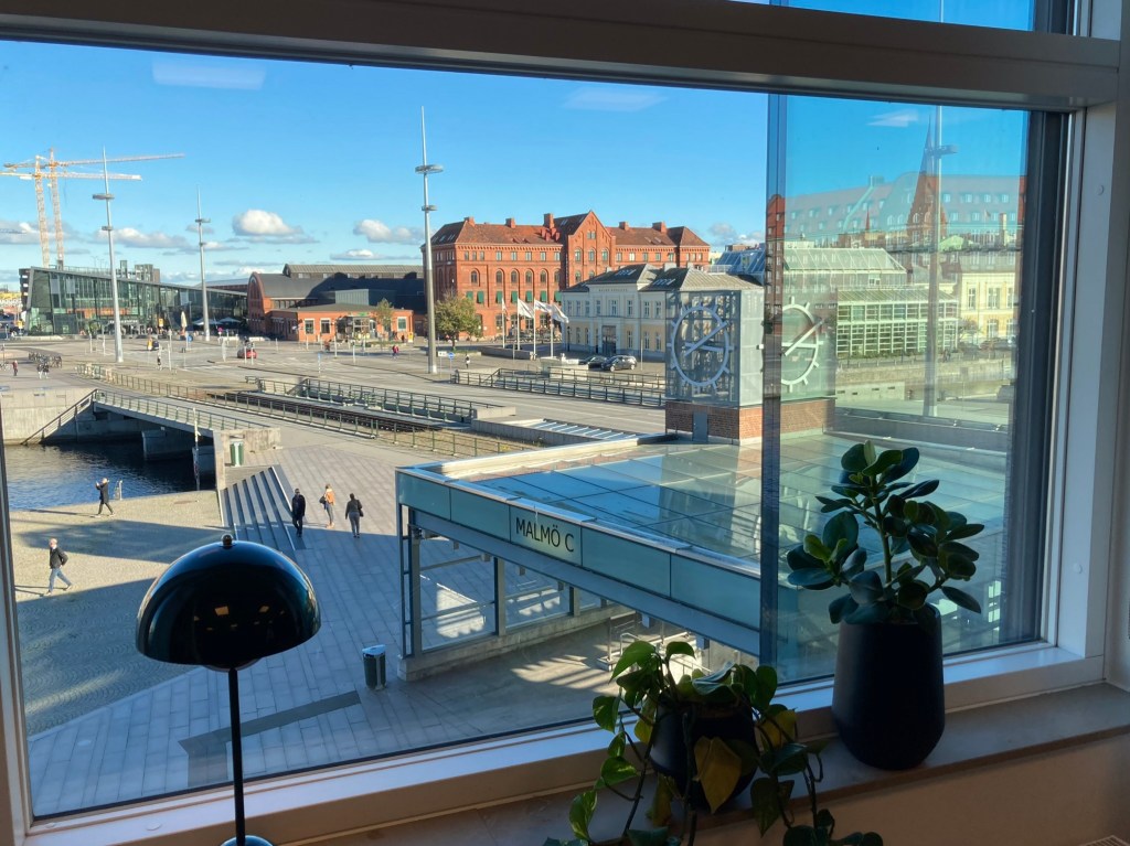 När tåget hade kommit fram till Malmö C dök vi även in på Karins nya jobb , på Anna Lindhs plats på andra sidan Skeppsbron