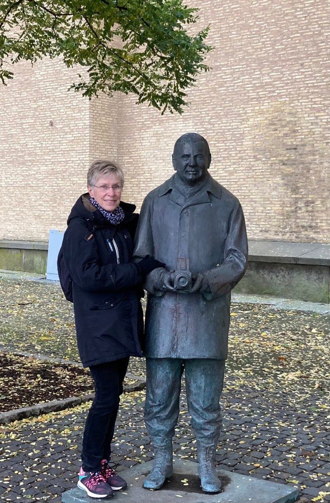 Under väntetiden hann vi med en promenad upp till Götaplatsen. Det var där vi mötte Victor Hasselblad. Måhända att den kamera han höll i sina händer var av samma modell som den som var med till månen 1969.