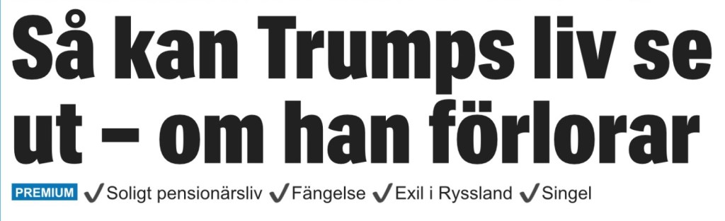 Losern Donald Trump Expressen förutspår fyra alternativ för Trumps liv när han har kastats ut det hus där han aldrig skulle ha släppts in. Dela det här: Dela på X (Öppnas i ett nytt fönster) X Dela på Facebook (Öppnas i ett nytt fönster) Facebook Gilla Laddar in … Relaterade