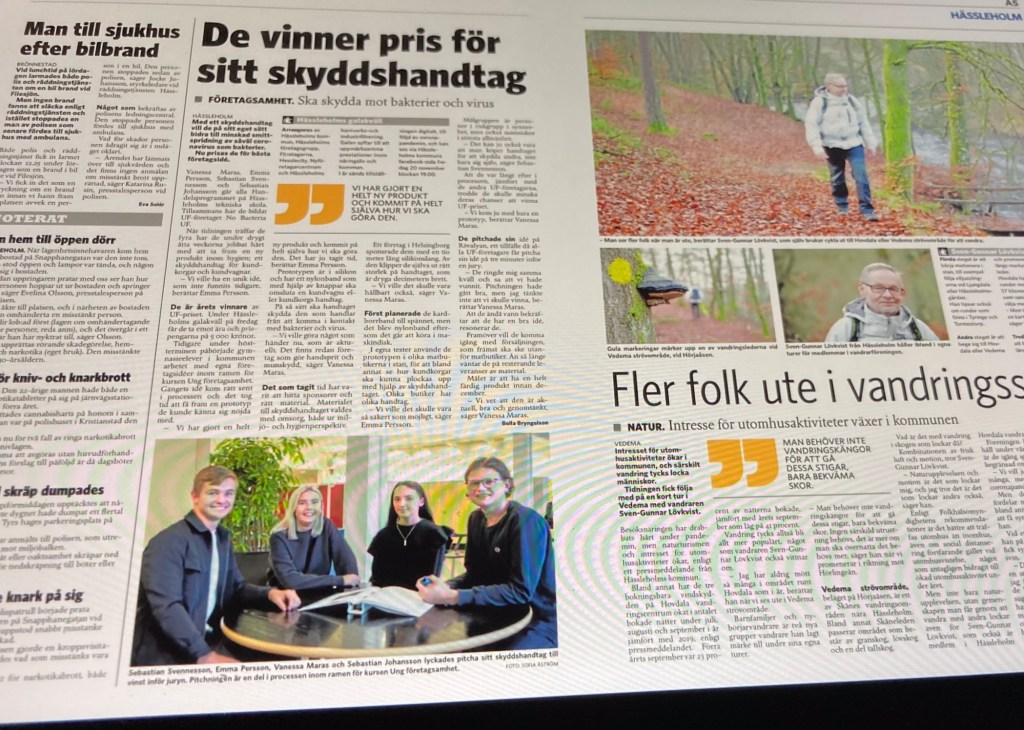 Jag läste i dagens Norra Skåne om några gymnasieungdomar som har prisats för ett av dem framtaget handtag, ett handtag som skall skydda mot (corona)virus och bakterier.