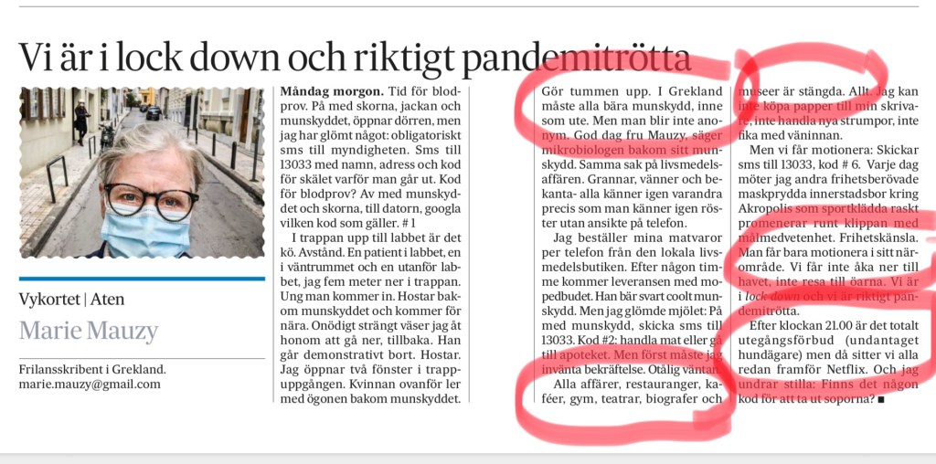 De som gnölar och gnäller över de svenska coronarestriktionerna skall vara glada att de inte befinner sig i Grekland.