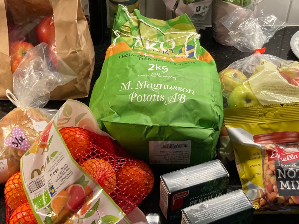 Först tog vi elbussen till biblioteket för att hämta ut en bok som var beställd. Men istället för att ge oss in i virusmolnen i butikerna på Framnäs City tog vi lokalbussen tillbaka och klev av nära Kållands enda matbutik, den så förnämliga Auto Mat.