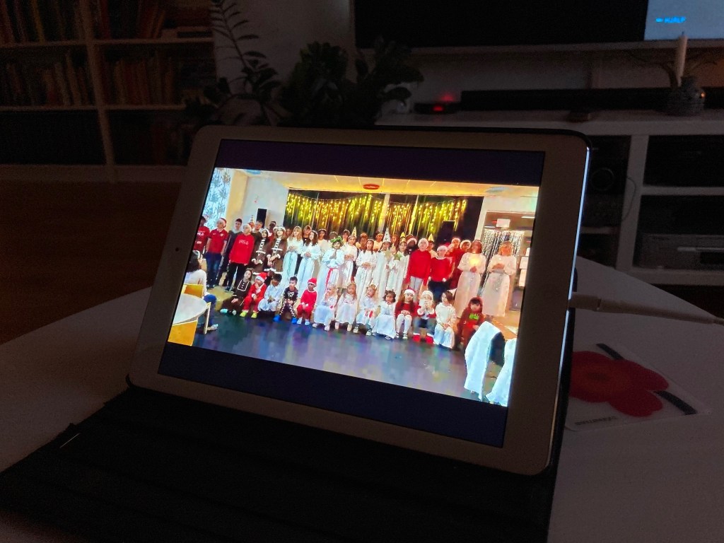 Nu på morgonen satt vi bänkade framför plattan för att ta del av direktsändningen från den (kommunala) mångkulturella skola där två av våra barnbarn går.