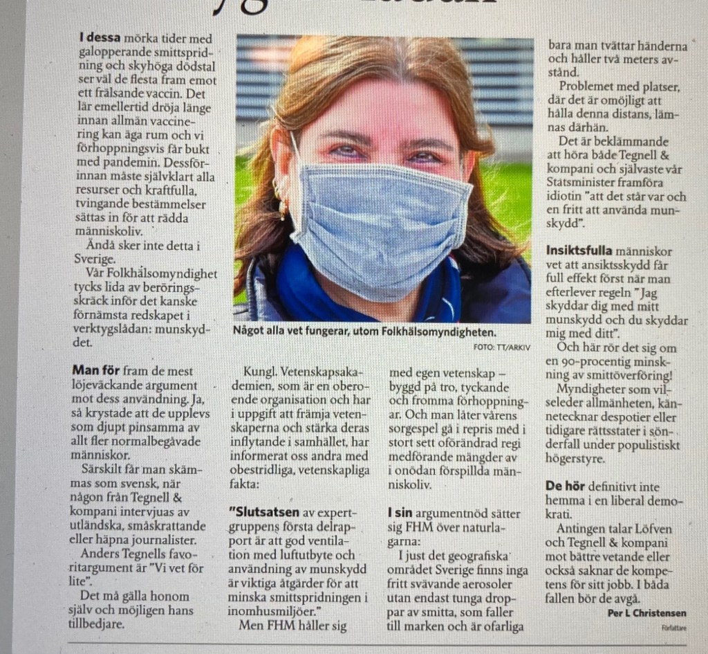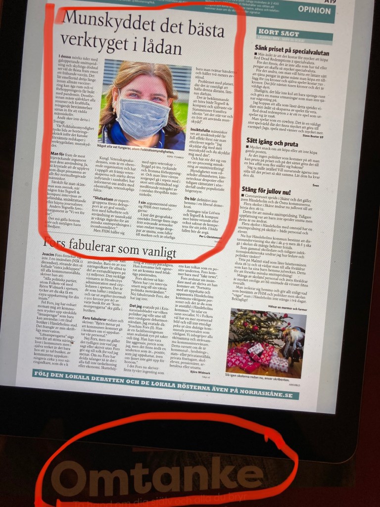 Folkhälsomyndigheten och Regeringen får sig en rejäl och ”välförtjänt” avhyvling på insändarsidan i dagens Norra Skåne.