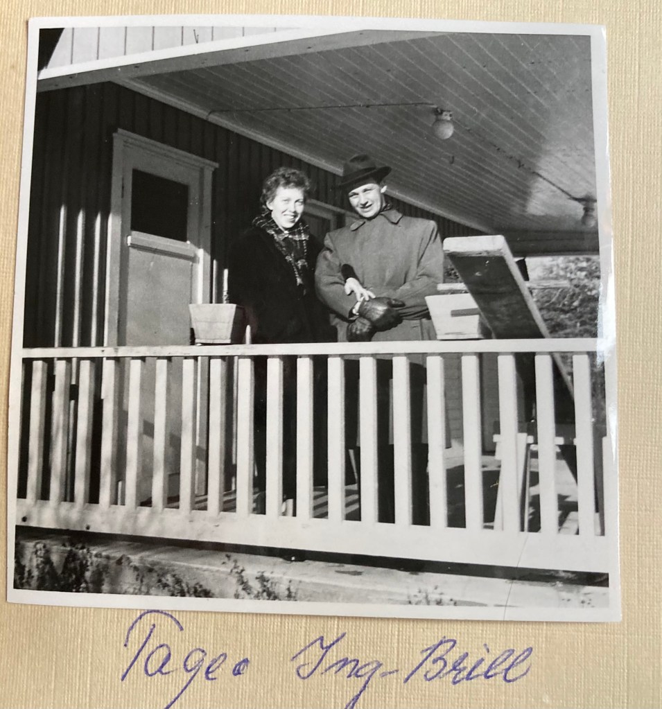 Det tredje fotot är troligen från Karlsborg. Där ser vi min mors yngsta syskon Tage, stående tillsammans med hustrun Ing-Britt, som sorgligt nog lämnade detta Jordeliv några dagar in på 2021.