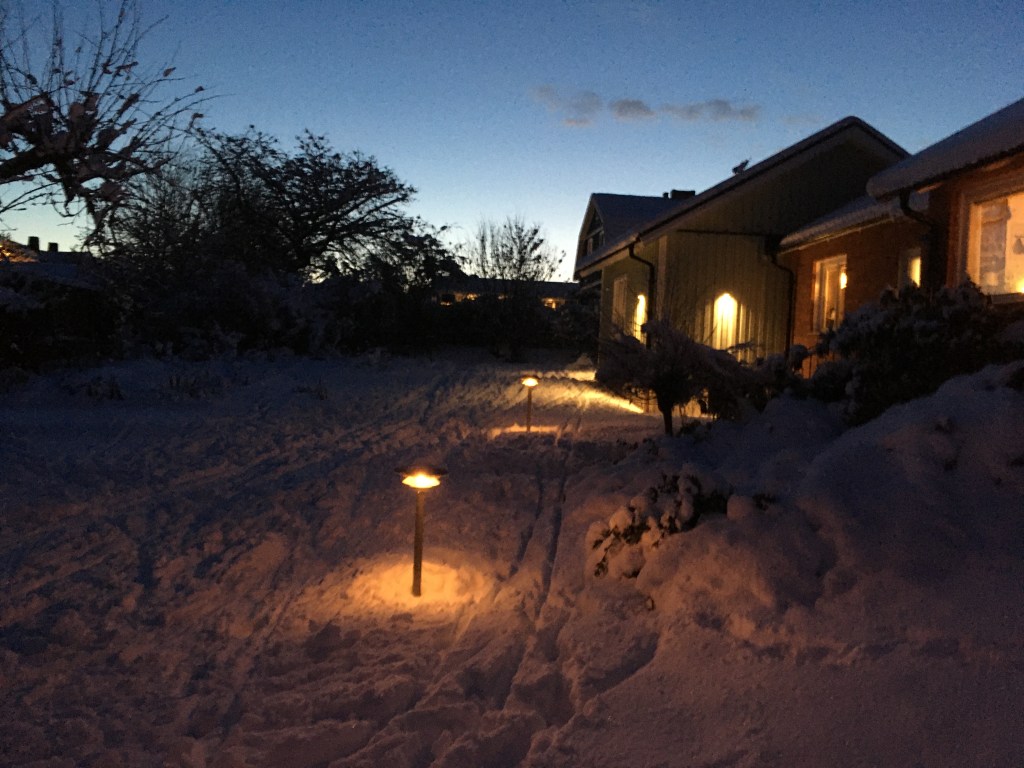 Här kommer det några dagsfärska foton från ett allt vintrigare Göinge.