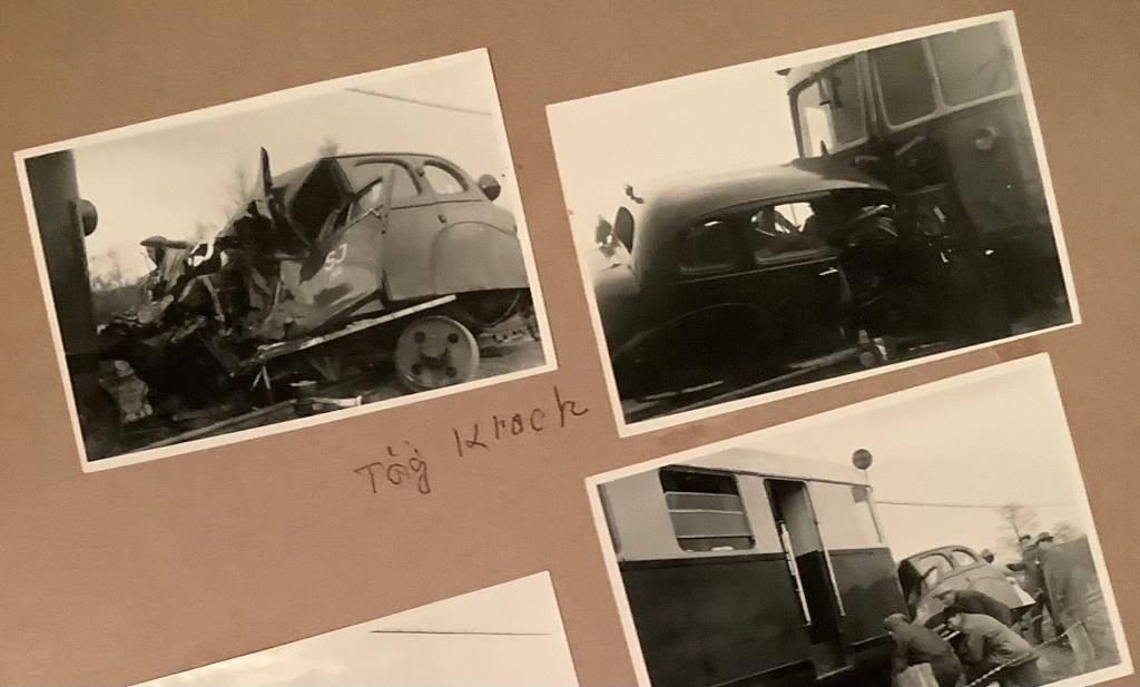 Bilderna ser otäcka ut men min far har berättat att ingen kom till skada. Antagligen hann de som färdades i rälsbilen kasta sig ur denna strax före olyckan.
