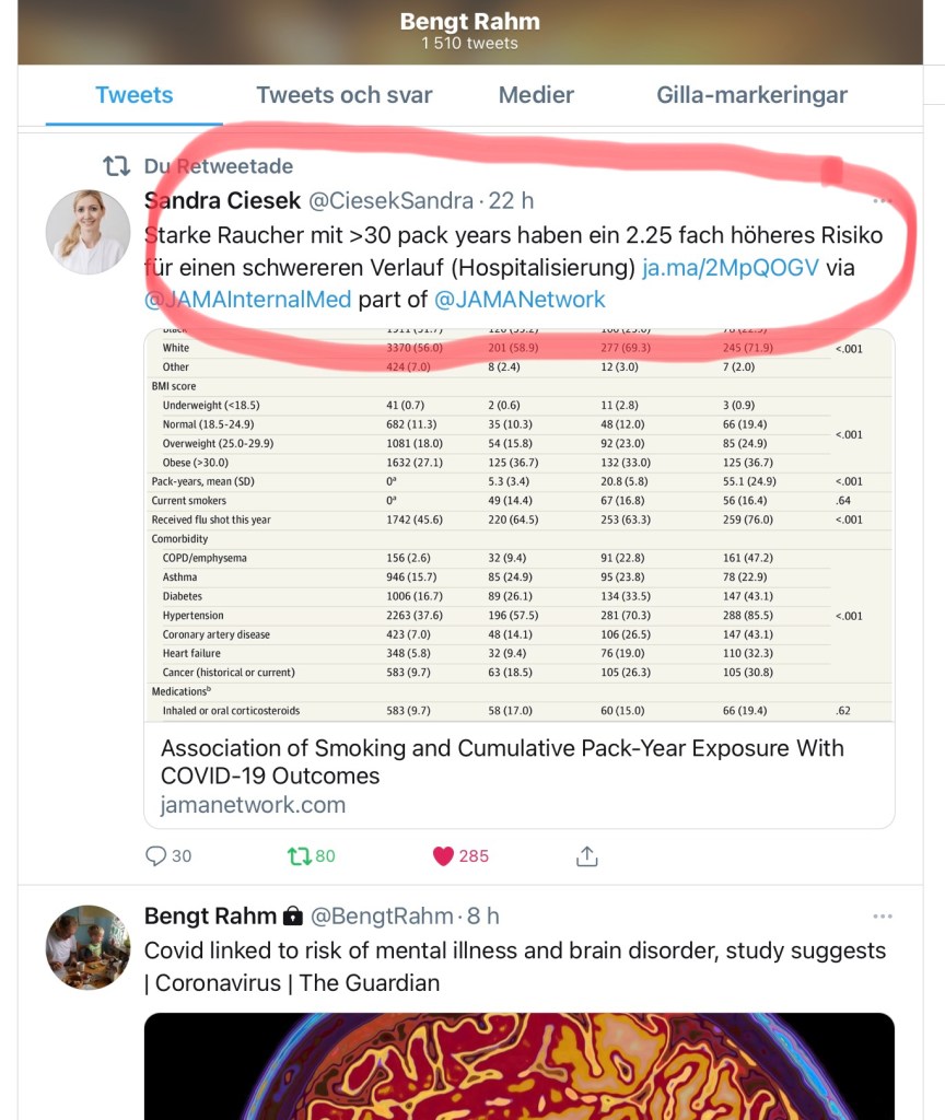 Det bör man givetvis aldrig göra, och definitivt inte om man vill minska risken för ett allvarligt insjuknande i Covid-19.