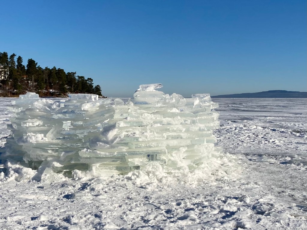 Man kan nästan tro att det är en ny isbrytare som är ute och assisterar på Vänern, med sjökapten Elis barnbarn stående på kommandobryggan!