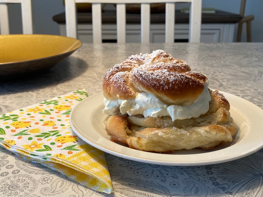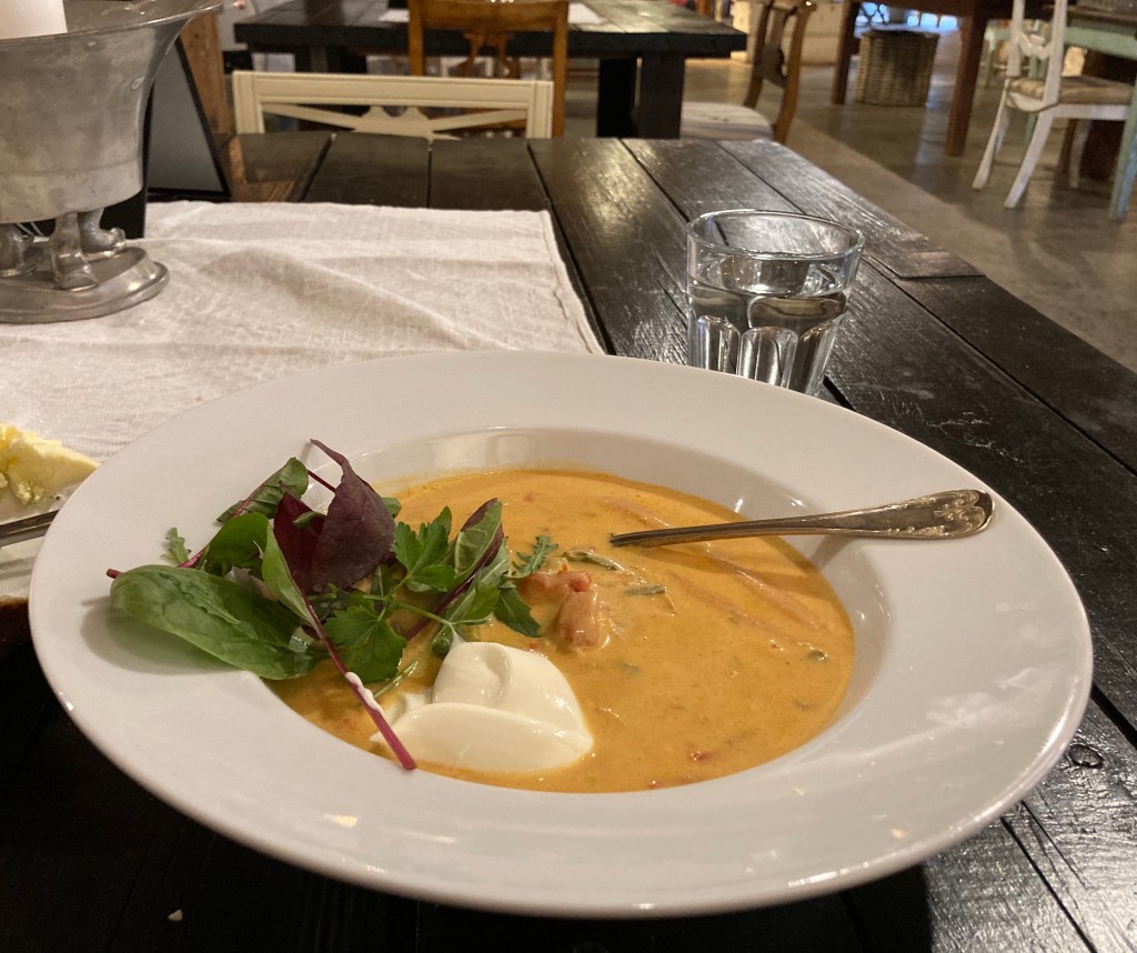 Efter en nogsamt utförd ”hindersprövning” tog vi mod till oss och klev in på Klostret. Det beslutet ångrar vi inte en sekund!! Vi fick en fin pratstund med bagare Linus och åt sedan en fantastiskt god fisksoppa med nybakt surdegsbröd. Med oss hem fick vi en semla, designad av mästerbagaren Linus. Varken valnötter eller pumpa lär saknas i denna troligen smått hälsovådliga fastlagsbulle.