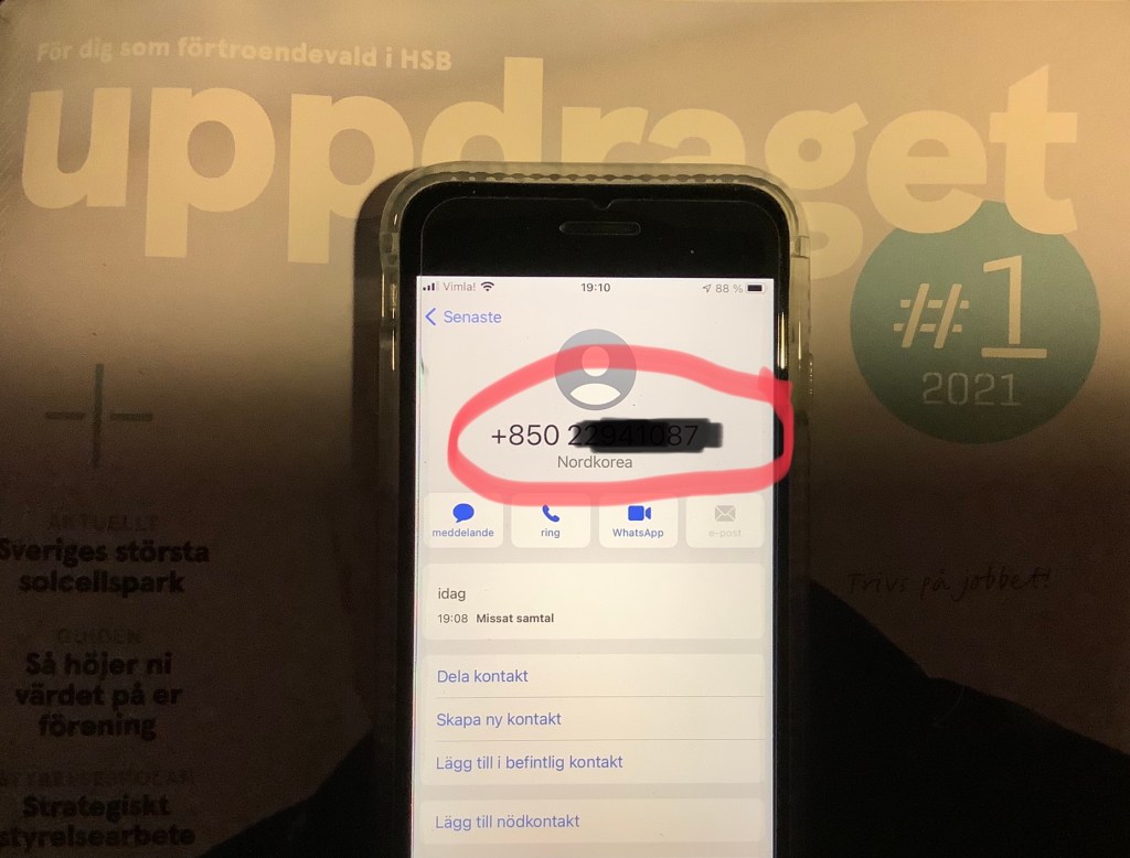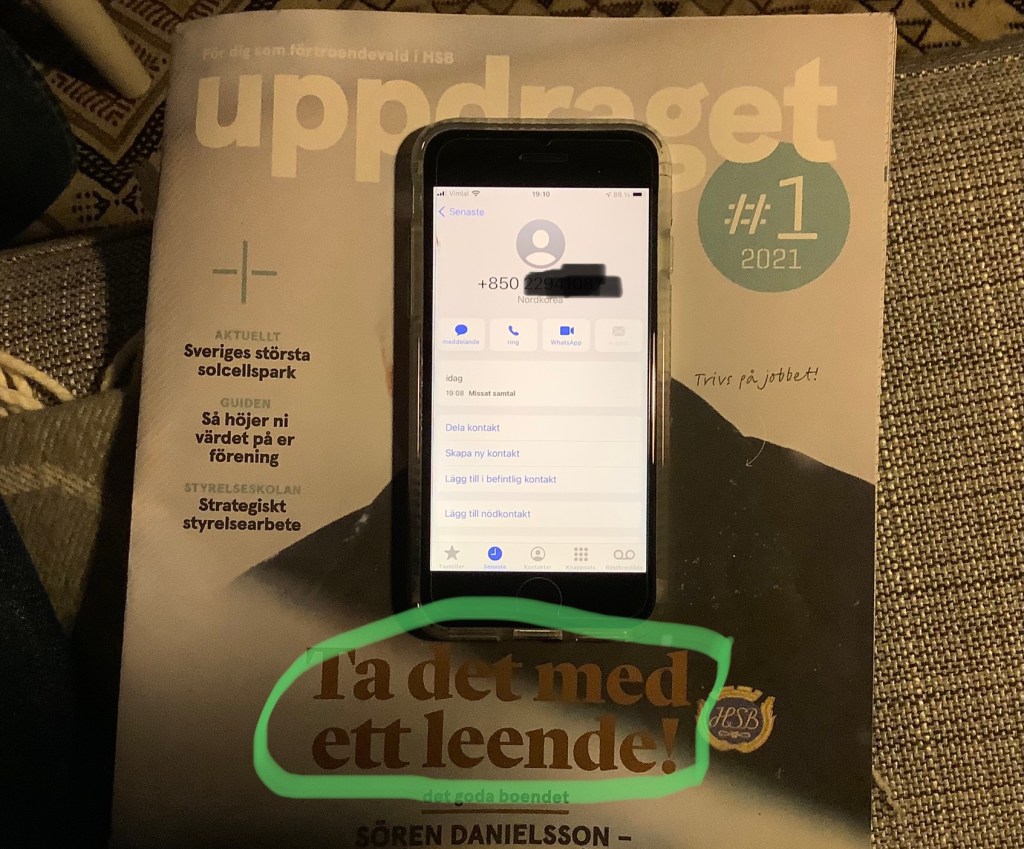 Det ringde i telefonen ikväll. Samtalet kom från Nordkorea. Men jag tordes (givetvis) inte svara.