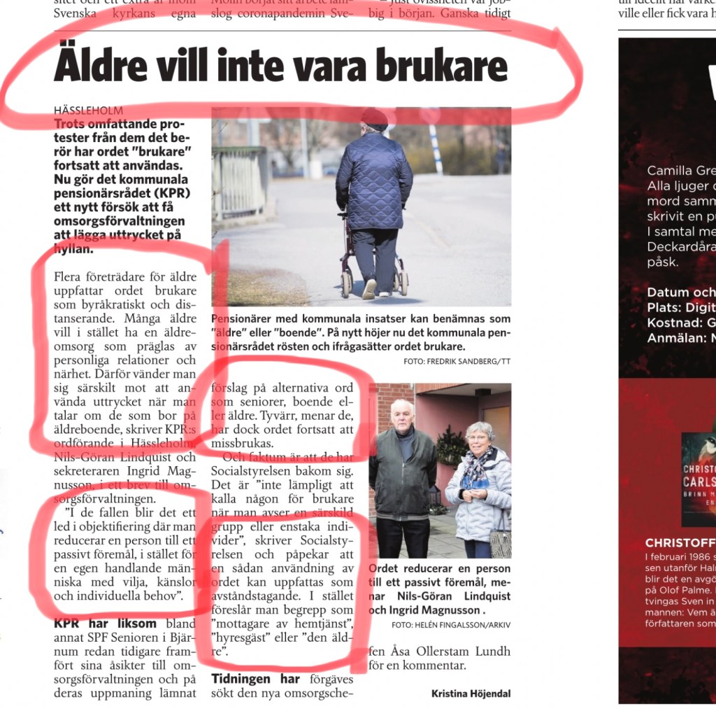 Det borde väl gå att komma på en lämplig benämning även på de som har beviljats hjälp och stöd från hemvården. I bästa fall kan Nyordslistan 2021 ge oss en sådan.