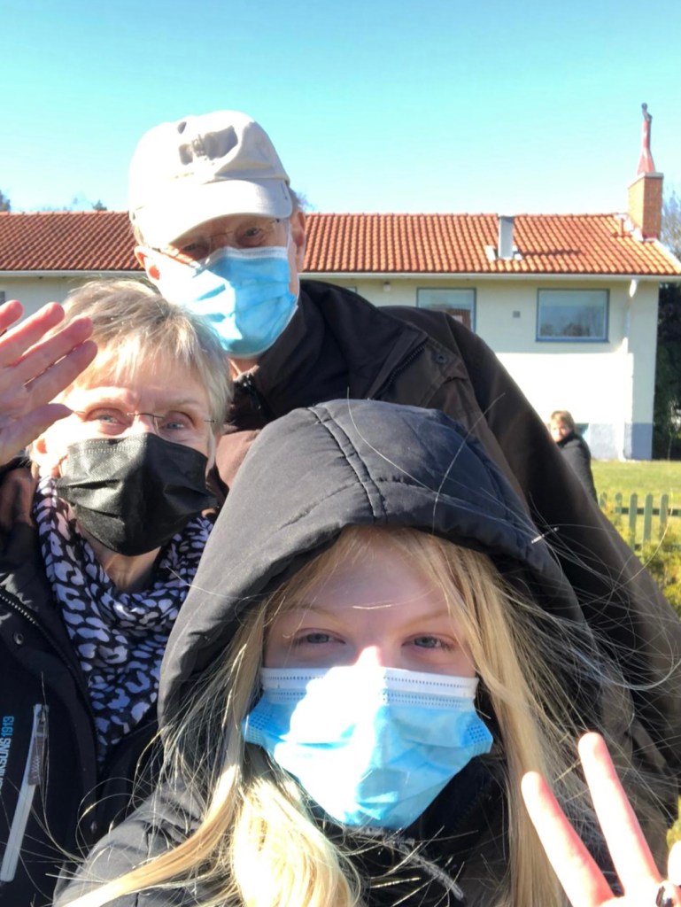 I förrgår hade vi lyckan att få träffa barnbarnet Luma, givetvis iförda munskydd.