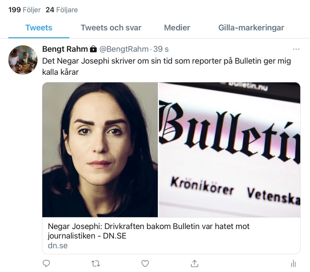 De fyra månader som gått sedan Negar Josephi började på Bulletin känns som flera år av konflikter och maktkamp. Det har handlat om allt utom journalistik. Men riktig, konsekvensneutral och opartisk journalistik var heller aldrig på agendan. På den stod i stället de ”sanningar” som gammelmedierna och pk-journalisterna mörklagt med hjälp av sitt pressetiska nonsens. Det var den väsentliga drivkraften bakom Bulletin: hatet mot journalistiken.