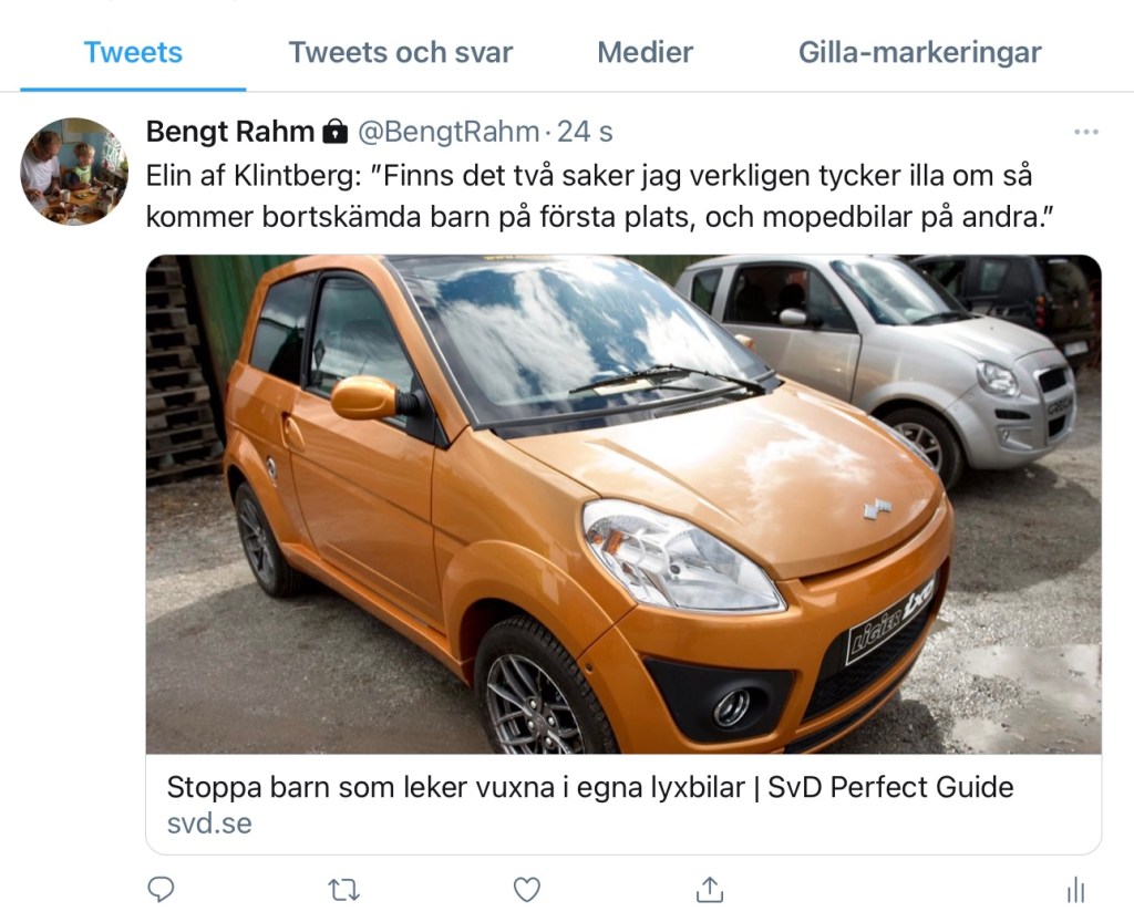 En helt ny mopedbil kostar i runda slängar 200 000 kronor. Det är en siffra som inte går att ta in. Vem ger sitt barn en födelsedagspresent i den prisklassen?
