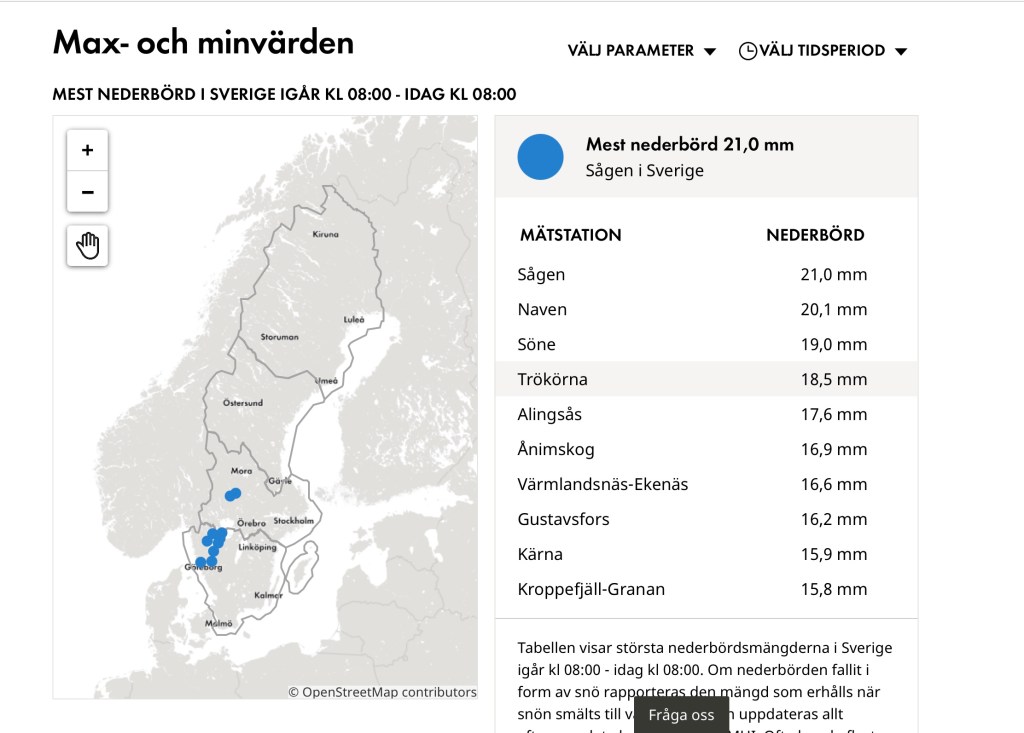 Under gårdagsdygnet var Söne en av de platser i landet som fick mest nederbörd.