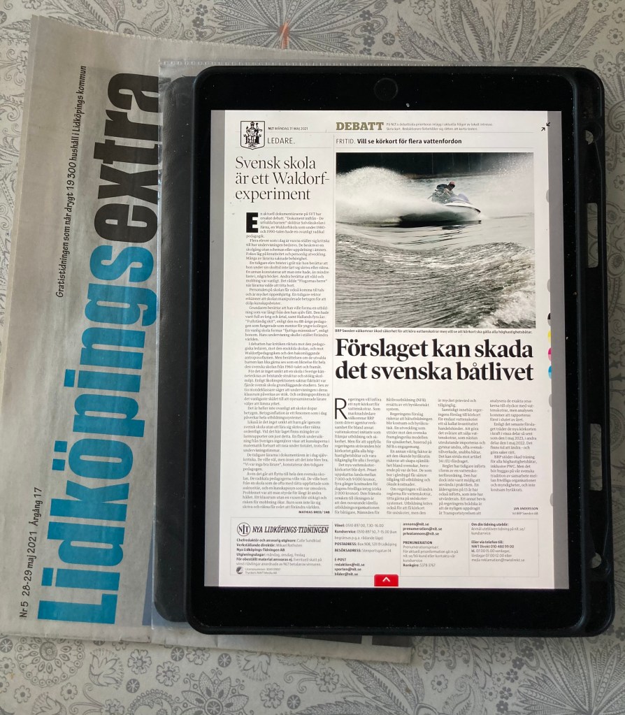 Han skriver inget om alla de fiskar, fåglar och människor vars liv terroriseras av Jetski-folkets aktiviteter.