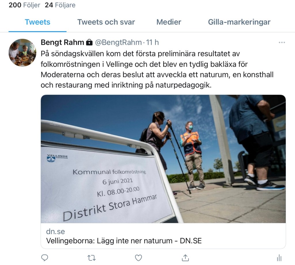På söndagskvällen kom det första preliminära resultatet av folkomröstningen i Vellinge och det blev en tydlig bakläxa för Moderaterna och deras beslut att avveckla ett naturum.