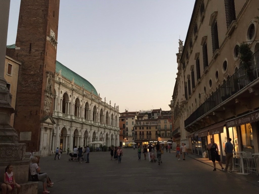 Den tillbringade vi i Vicenza i Italien. Här ringer jag hem till min mor. Hon kunde samtidigt se oss via en webbcamera som var placerad på det enastående renässanstorget: