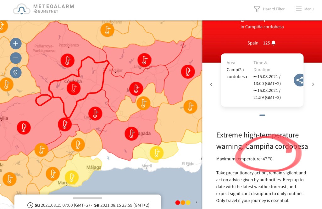 Den som vill följa den extrema värmebölja som härjar i sydvästra Europa kan göra det via Meteoalarm: https://meteoalarm.org/en/