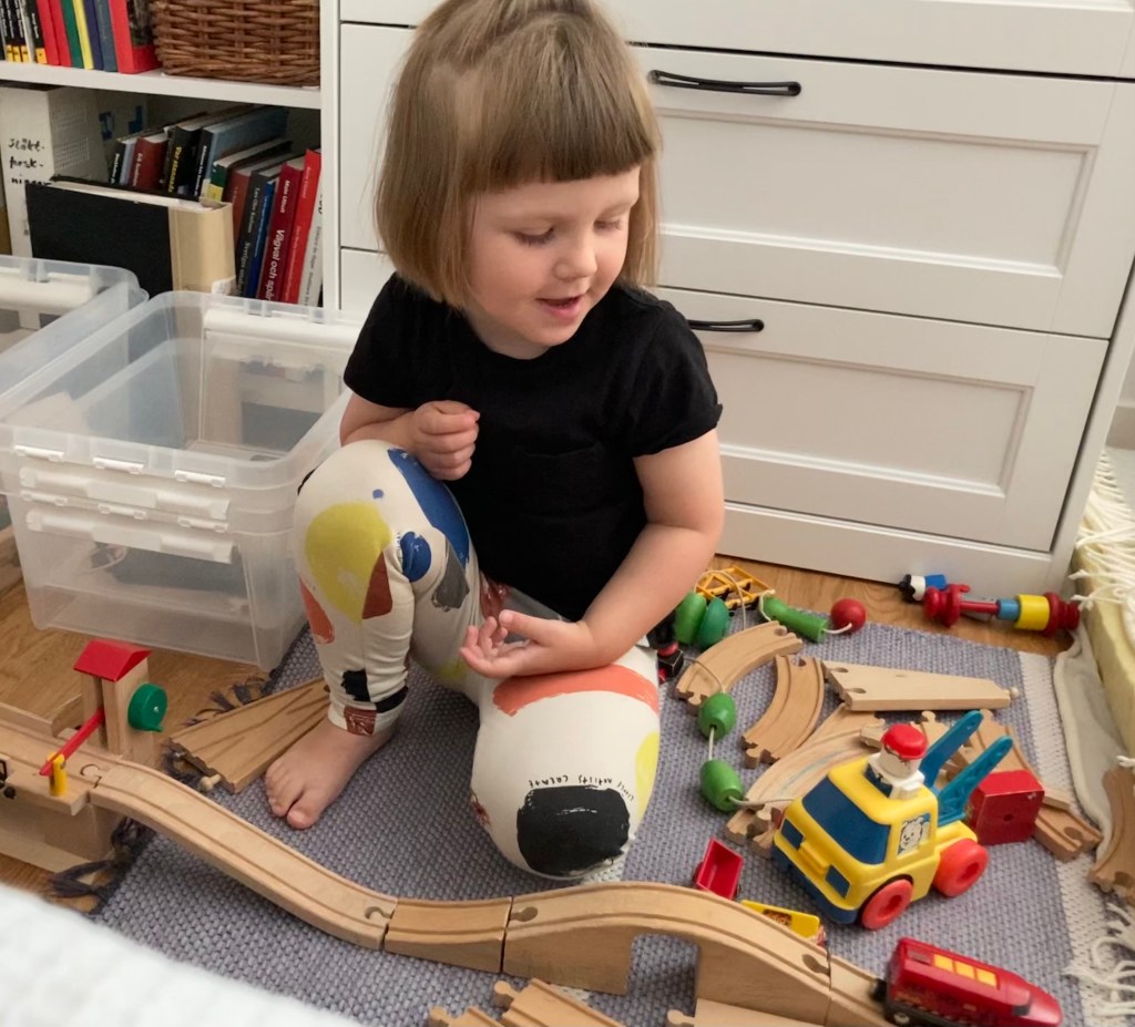 I Majlis ljuvliga begreppsvärld heter BRIO-tåget Tunnelbanan och här väntar vi på nästa avgång till Hässelby Strand (från Stenhammarskolan).