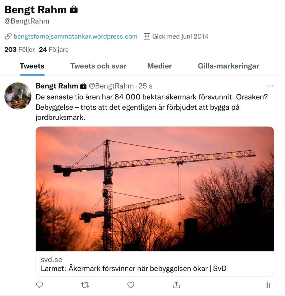 Att bygga på åkermark är en usel handling. De ansvariga borde in på anstalt. (Ta inte allt det bloggaren skriver på fullaste allvar).