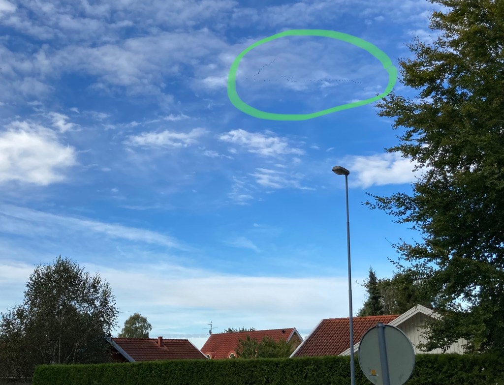 Möjligen kan det ha varit samma flock som hängde över Falköping något senare på förmiddagen, förevigade av min bror: