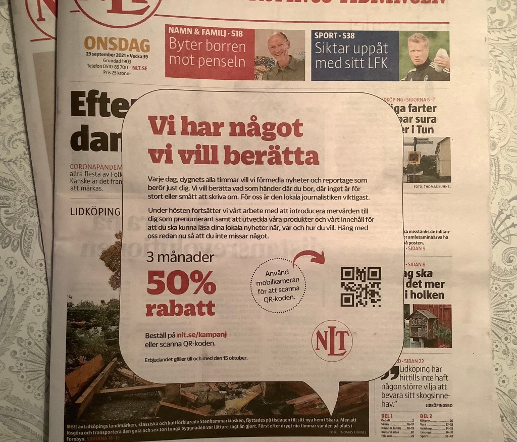 Vad som kan vara bra att veta för den som prenumererar på papperstidningen är att en stor del av årsavgiften går till distribution. Inte särskilt mycket blir kvar till journalistik.