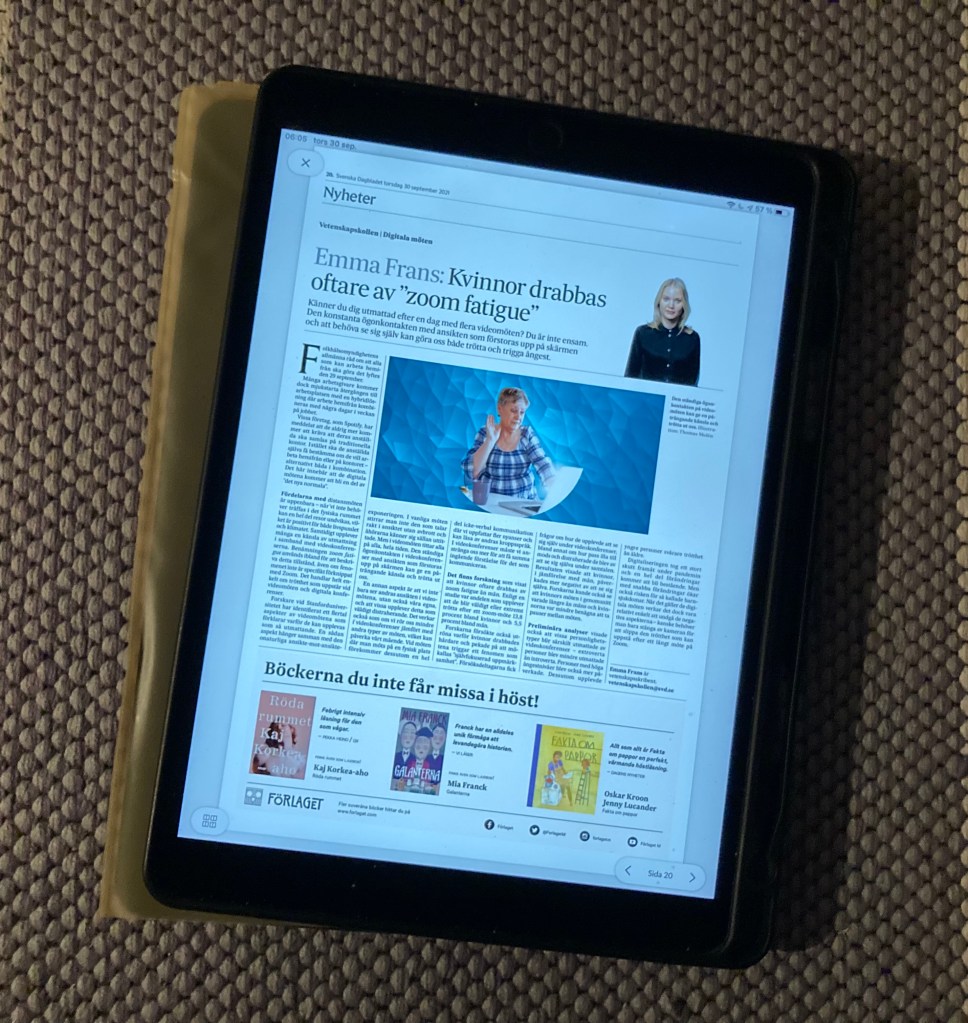 En annan aspekt är att vi inte bara ser andras ansikten i videomötena, utan också våra egna. Vissa upplever detta som väldigt distraherande. Mötena triggar ett fenomen som benämns ”självfokuserad uppmärksamhet” och kvinnor blir särskilt illa till mods av att se sig själva hela tiden.