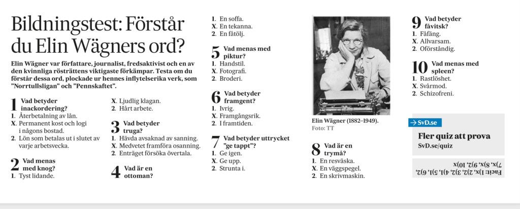 Här är bildningstestet i lördagens SvD: