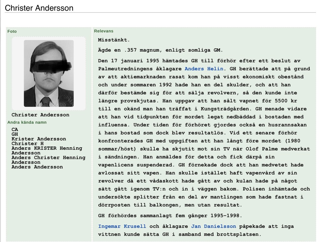 Men vem det var som mördade Olof Palme är fortfarande höljt i dunkel. Christer Andersson får inte glömmas bort.