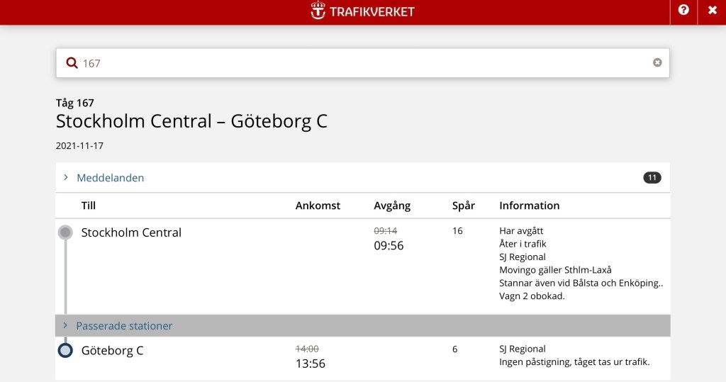 Tåg 167 mot Göteborg via Mälarbanan kom iväg 42 minuter sent, men kom ändå fram 4 minuter före utsatt tid.