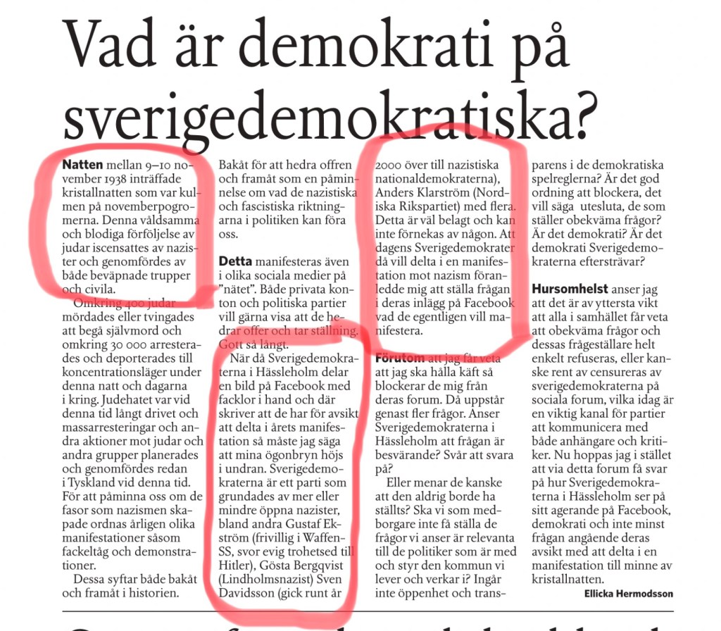 Man häpnar!! Skall sverigedemokraterna, som ju är sprungna ur nazismen, delta i en manifestation till minnet av Kristallnatten?