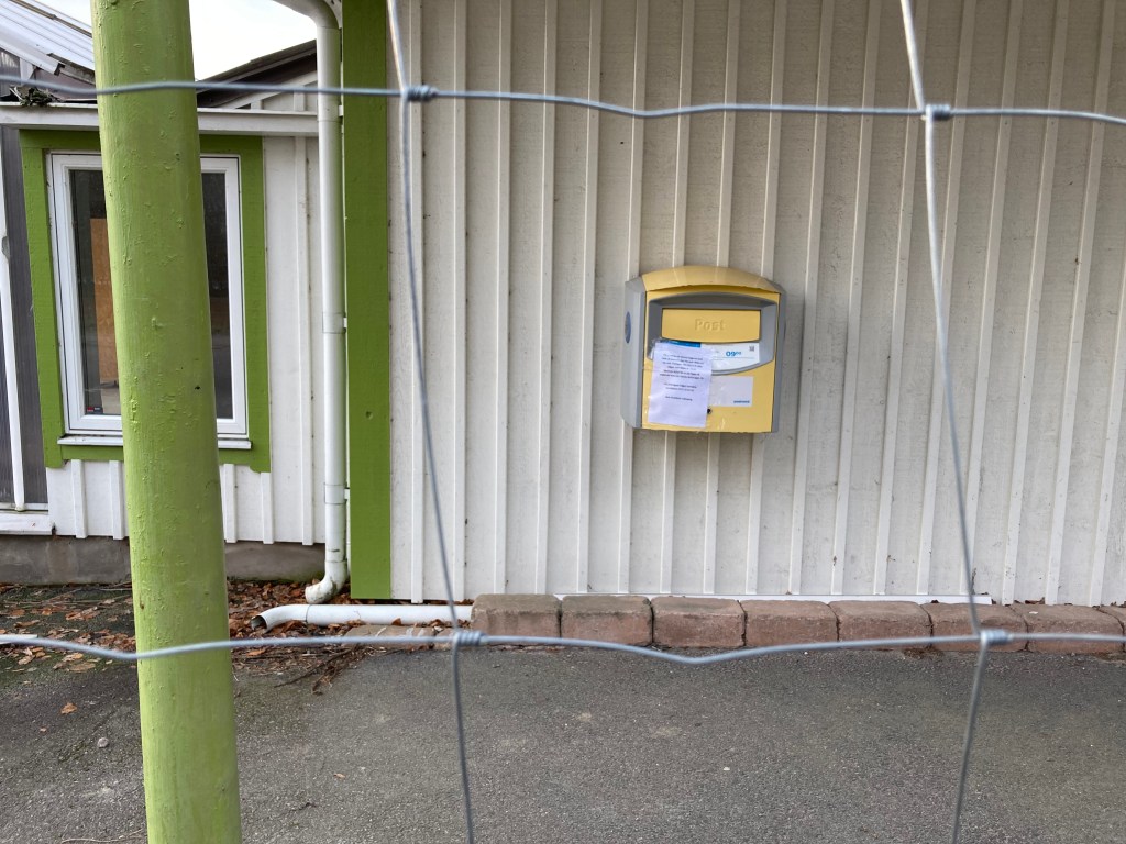 Brevlådan på väggen vid Lidens har varit instängslad i flera dagar. Men enligt anslag på densamma skall den tömmas till och med idag fredag (för att sedan flyttas längre upp i Stenhammar).