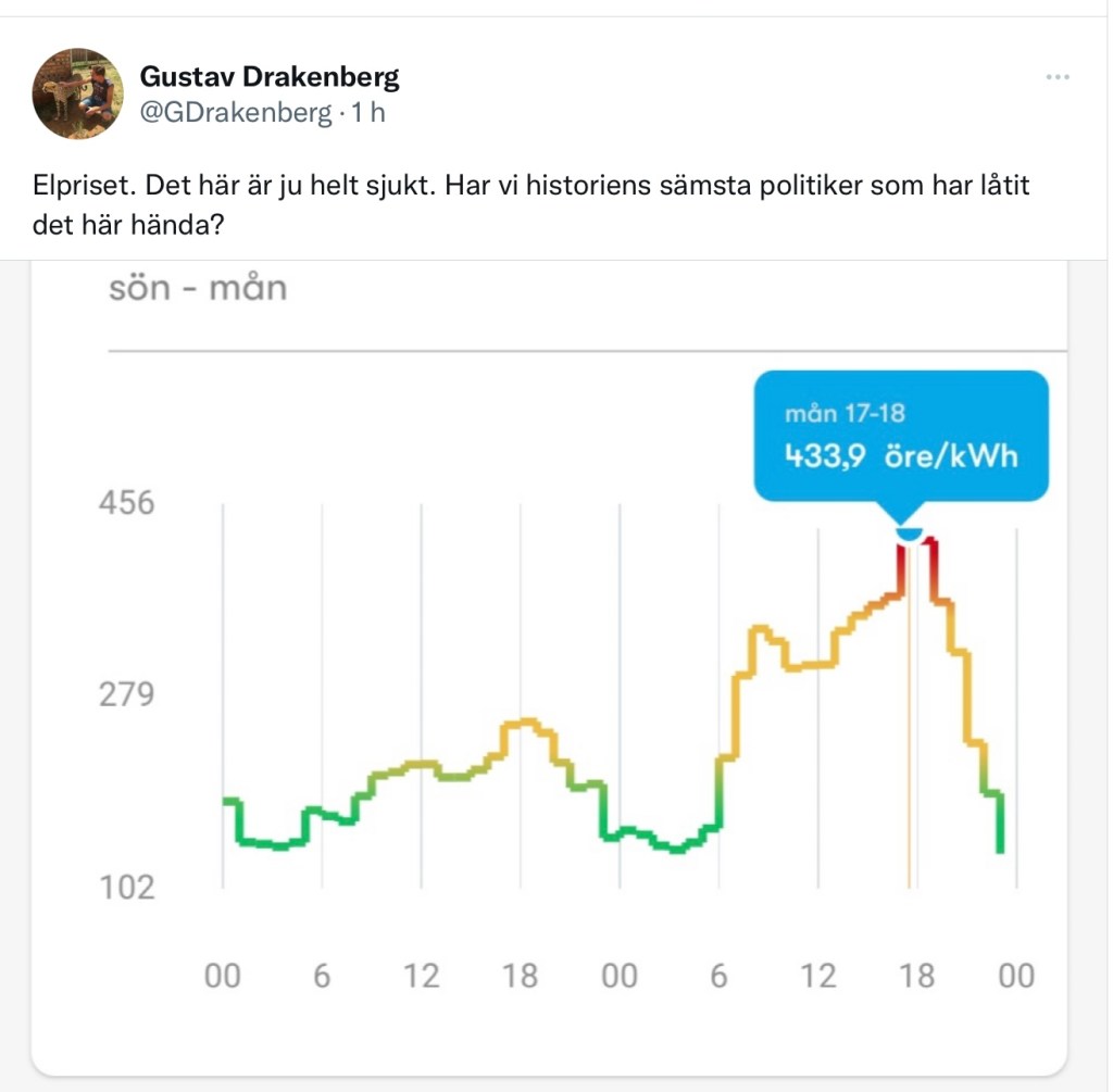 Elpriserna (se nedan) är utan skattepåslag. Lägg till minst en krona och dra sedan på långkalsongerna, snabbt som attan.