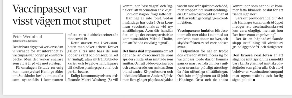Ledartexten är hämtad från morgondagens SvD. Den som har hållit i pennan har delvis rätt. Det behövs betydligt hårda åtgärder – för alla i samhället.