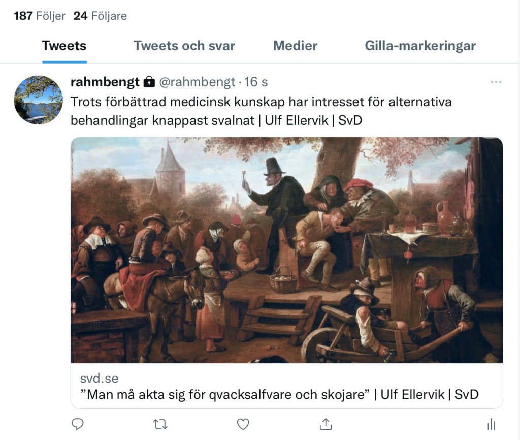 Under strecket i söndagens SvD: https://www.svd.se/man-ma-akta-sig-for-qvacksalfvare-och-skojare