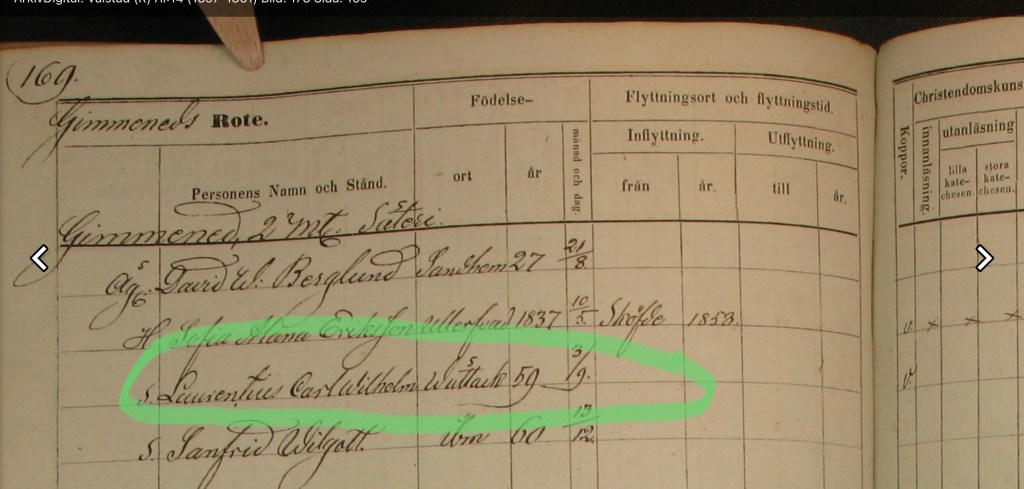 Carl är inringad med grönt. Han ligger begravd på Vättaks kyrkogård.