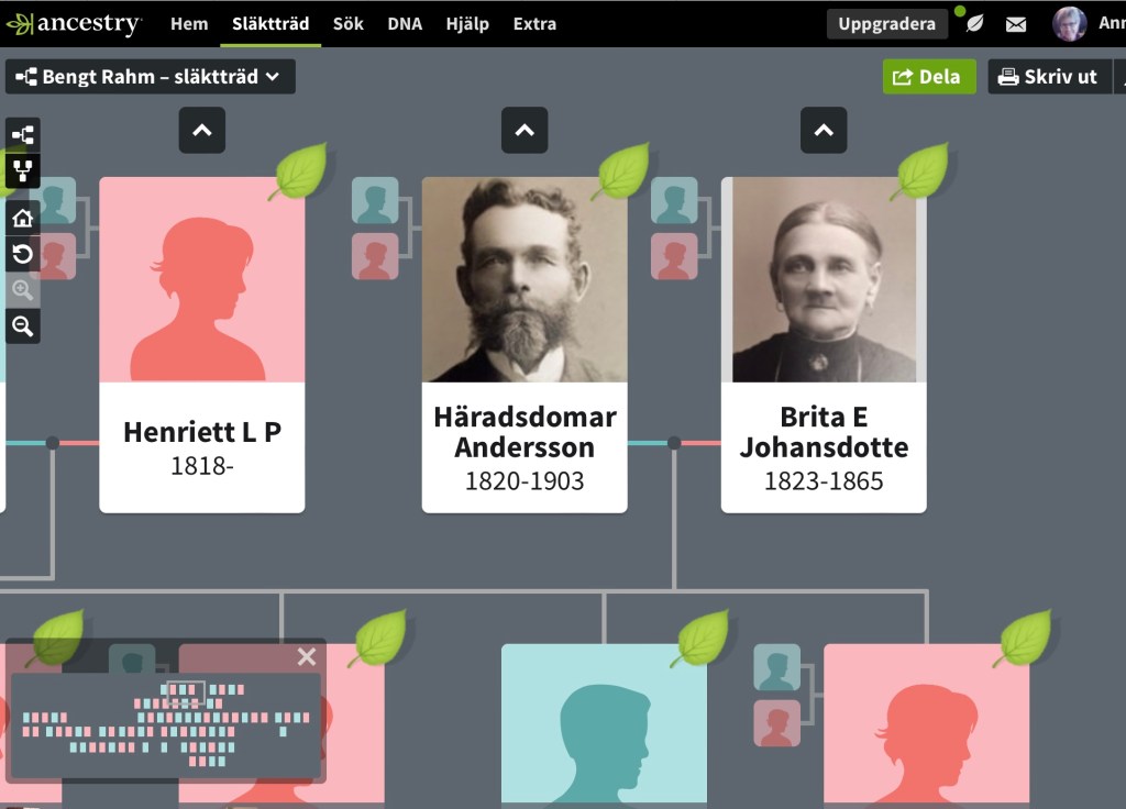 Till vänster på det översta fotot är Simons farmor placerad, Henriett Lovisa Polinätta Löfgren. Hennes mor var Sofia Elisabätt Söderberg Jakobsdotter. Hon var född i Katarina församling i Stockholm 1777.
