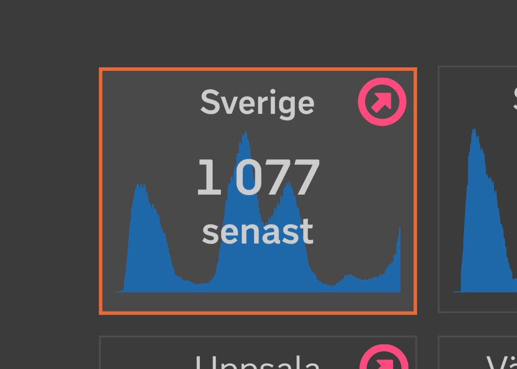 När jag kollade på inlagda för covid-19 på vanlig sjukhusavdelning (dvs exklusive IVA) fick jag en chock! 1077 Covid-fall är det nu: