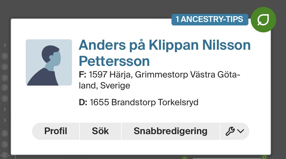 Anders och hans fru Märta är så långt bakåt i tiden jag hittills lyckats komma i min släktforskning. De var min morfar Simons morfars morfars morfars farfar och farmor.