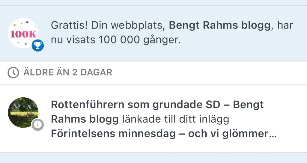 Dessvärre har jag avslutar två tidigare bloggar – varvid alla inlägg raderades. Men ingen skall inbilla sig att SD skall kunna utradera sin fruktansvärda historia. Det skall jag bli man för!