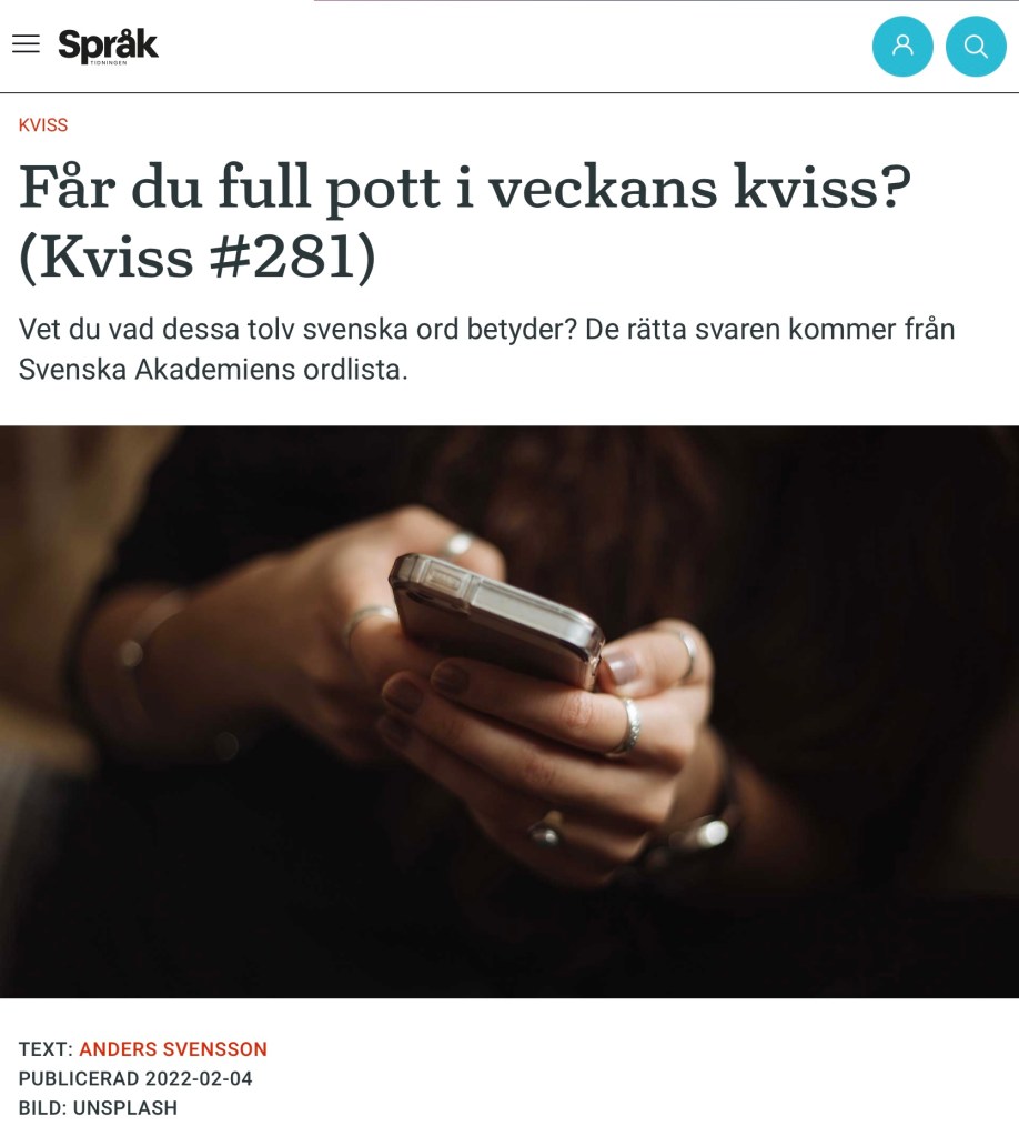 Hänsoven https://spraktidningen.se/2022/02/far-du-full-pott-i-veckans-kviss-kviss-281/ Dela det här: Dela på X (Öppnas i ett nytt fönster) X Dela på Facebook (Öppnas i ett nytt fönster) Facebook Gilla Laddar in … Relaterade